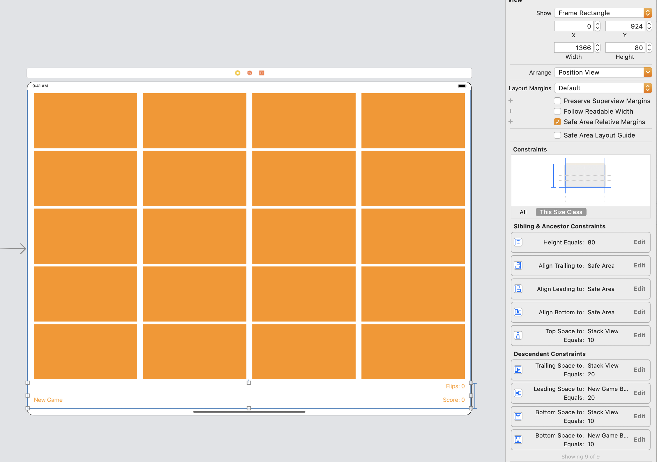 Last thing before moving on is create a bit more cards, let’s say 12. Go into the storyboard and just do that, not forgetting to hook the new ones up with the cardsButton array.