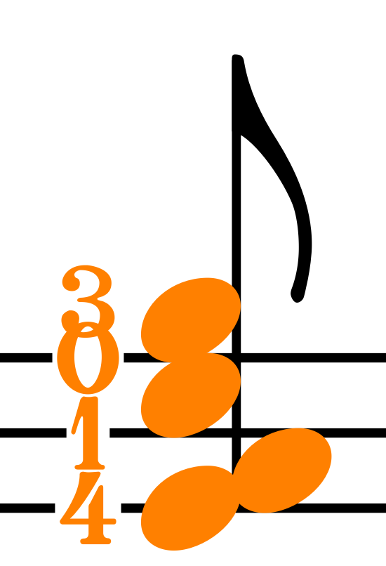Per quanto riguarda la mano sinistra, verranno utilizzati i numeri da 1 a 4, anche se, ovviamente, l’utente potrà —sbagliando— inserire qualunque numero. La corda vuota verrà indicata, come in tutti gli strumenti a corda, con uno zero (0).