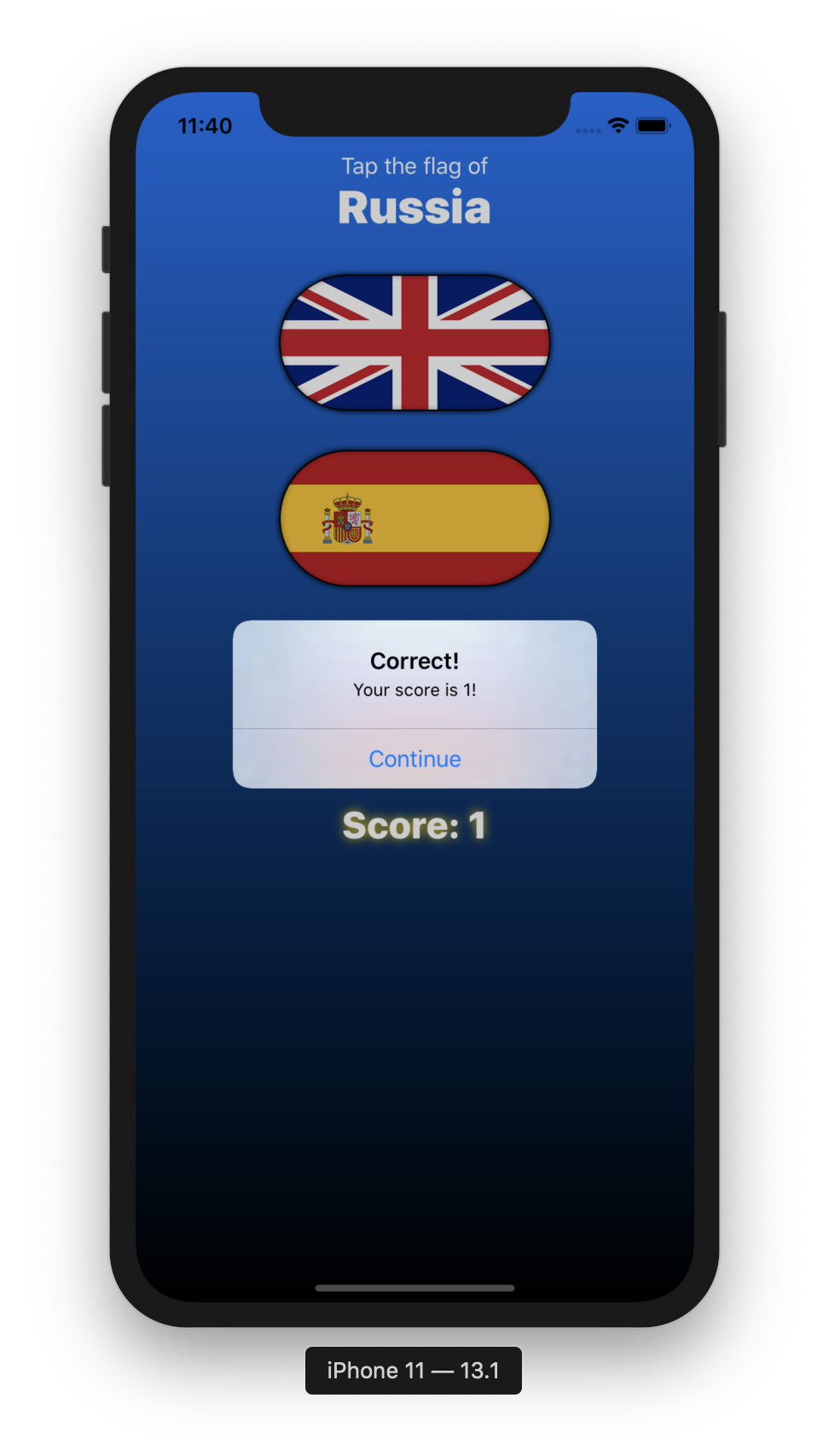 In this day we created a whole game from scratch, a guess-the-flag game that was super-fun to create! This is the same as Project 2 of Hacking with Swift but SwiftUI allowed for some very nice graphical tweaks to make the game much more beautiful than it would have been in UIKit with the same lines of code. Of course everything is possible but, I start to see why SwiftUI will be the future.