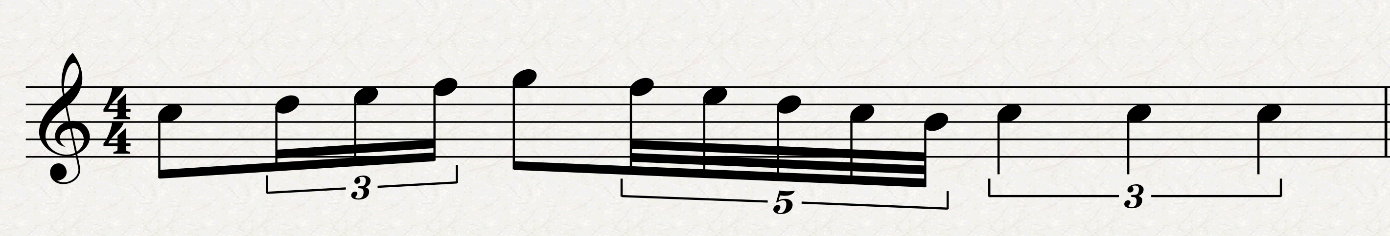 It often occurs that we need to write a long run of triplets or other irregular groups. I am sure you will have already witnessed the following result: