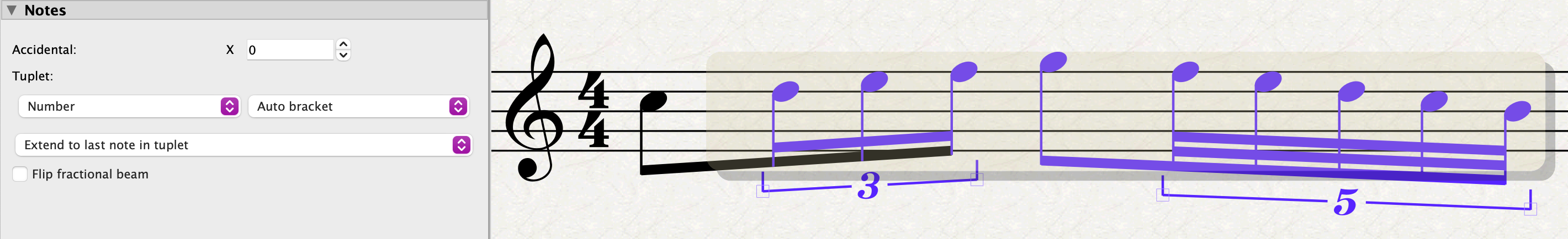 The second relates to the bracket that gets created when the tuplet is part of a larger beaming group or when there is no beam at all, such as in the following example: