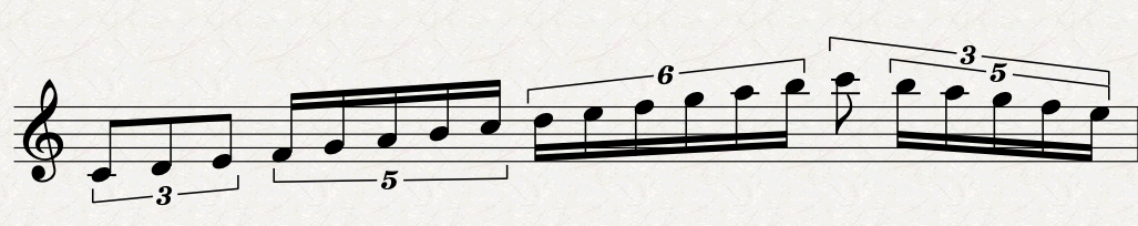 The first category manages the general position of tuplets over notes. Let’s start with this example:
