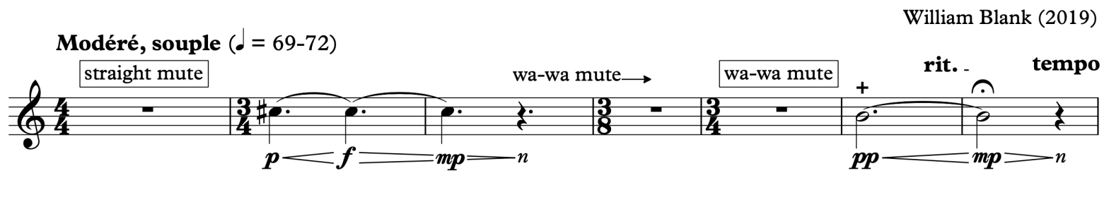 - If a specific mute is required, write an instruction at the end of the last phrase before the mute comes into effect.