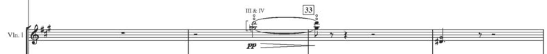 String instructions are also shown. If a double stop requires clarification, it is typically written on a single line, like “III & IV”. In ordinary contexts, I would write it in a stacked column.