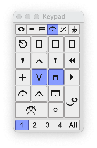 There’s also another side to this story: while text objects such as string instructions are easily hidden/shown in score/parts, the same is not true for bowings, since for them to be correctly stacked above the notes, they need to be articulations found in Sibelius’ keypad: