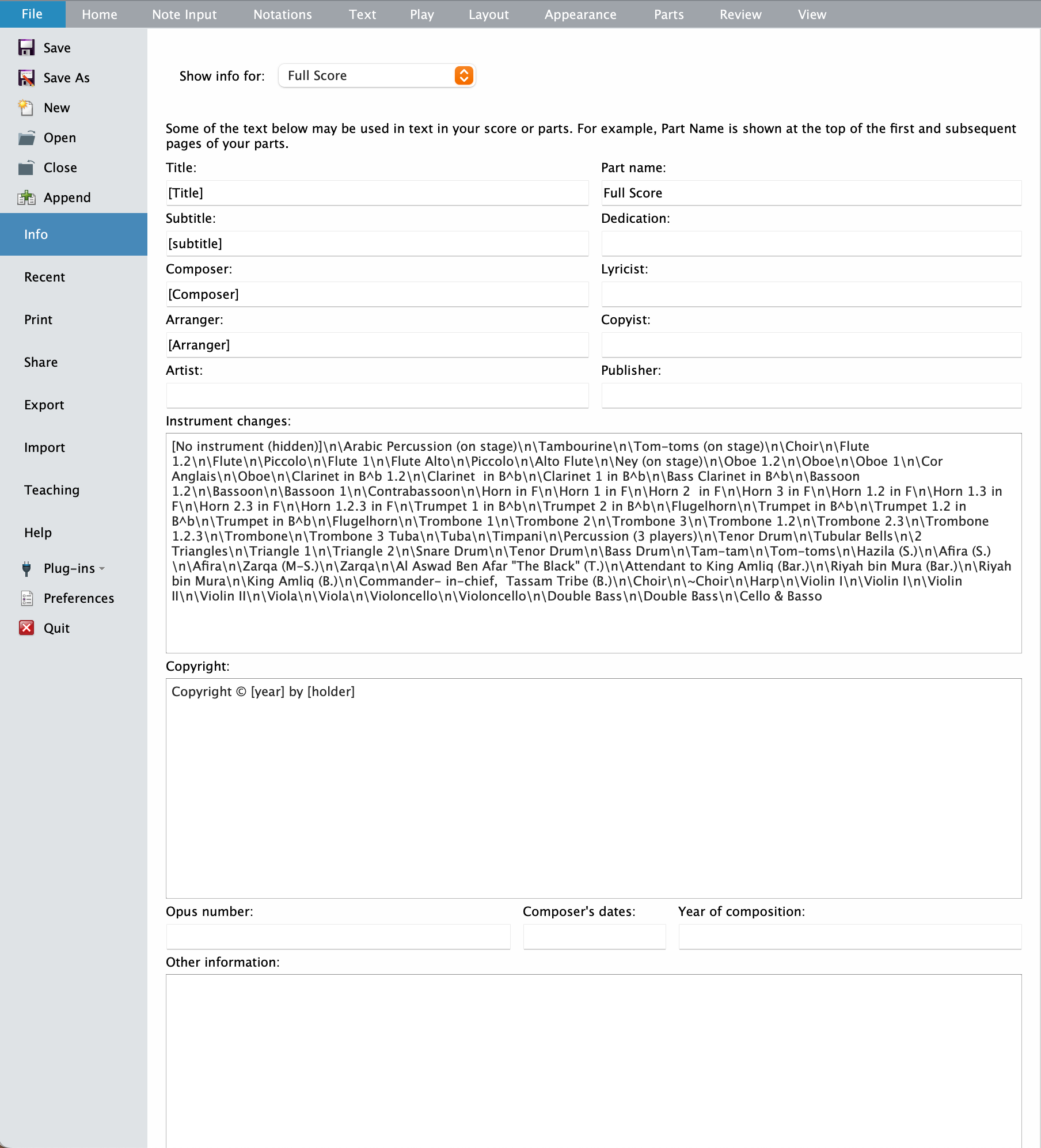 - Address: this is reserved for operas with a big team behind them. Same thing for the “Processed by <engraver>” field2.
