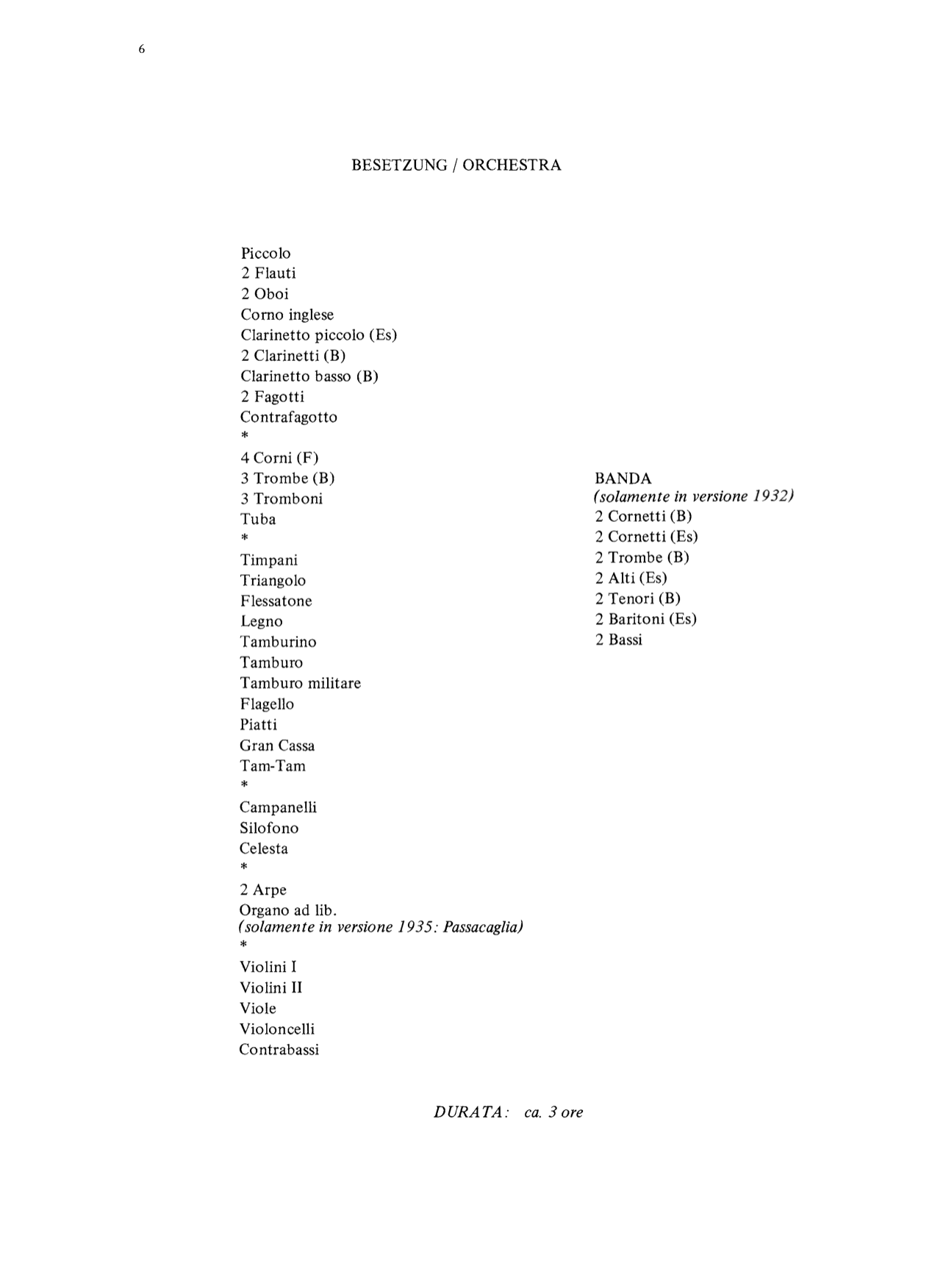 This page contains every detail you may want to include regarding the history of the opera itself. It is known by several names: “Notes on the History of the Opera”, “Prefatory Note”, etc… It is to be found either before or after the instrumentation page, in any case before the first music page. An “Editorial Page” may follow if more information is necessary.