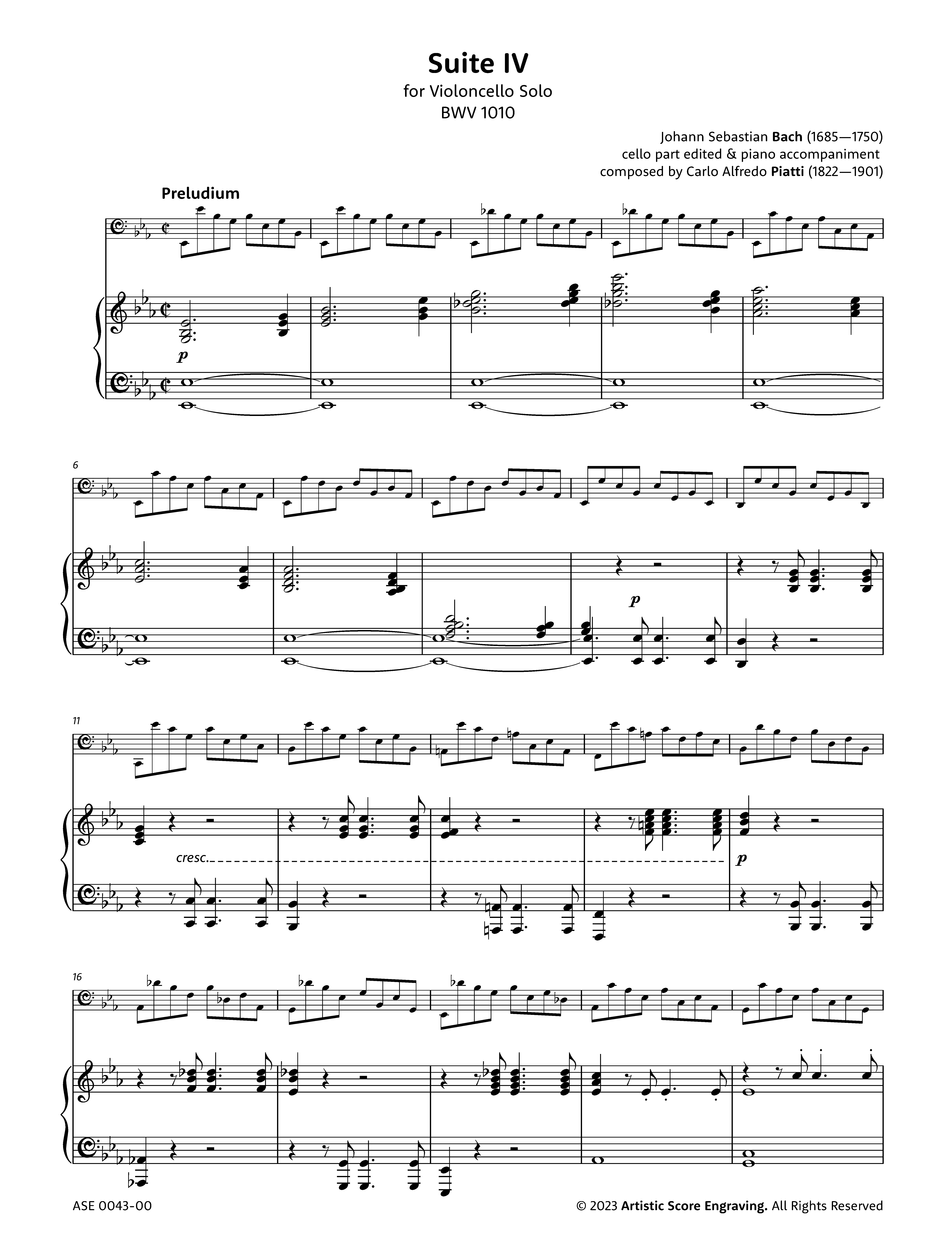 Bach, J. S. Suite n° 4 with piano accompaniment by Piatti