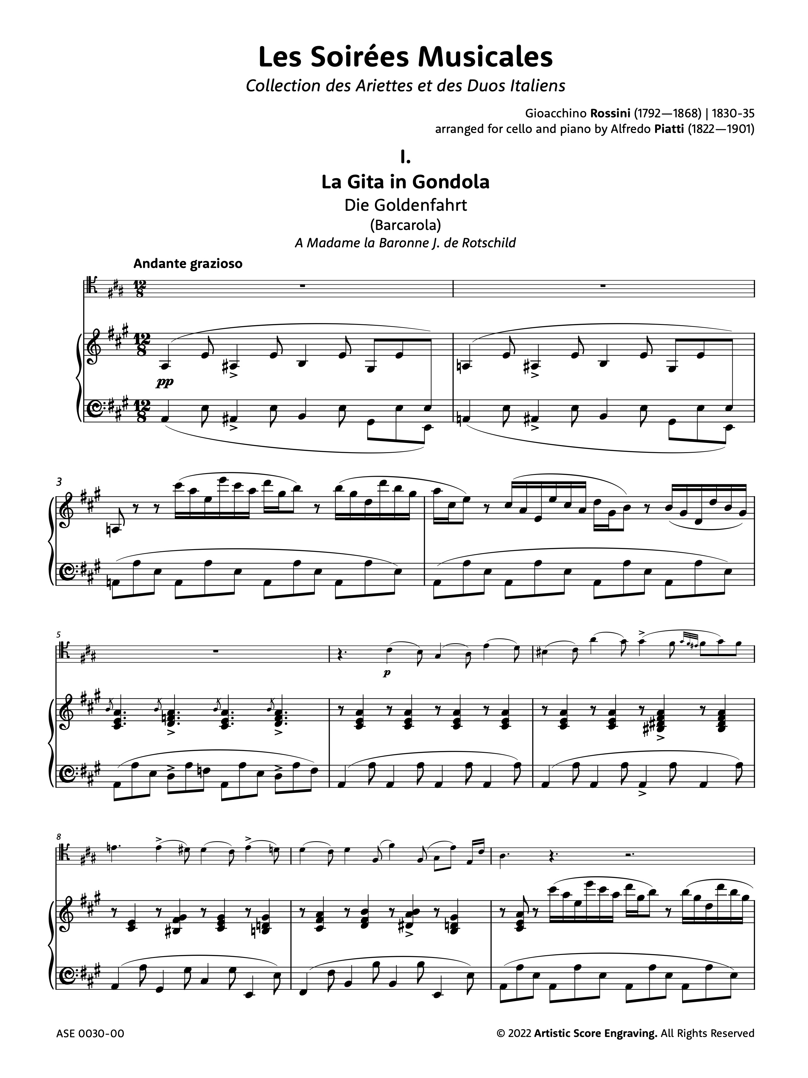 Rossini Soirées Musicales for cello and piano, arranged by Piatti