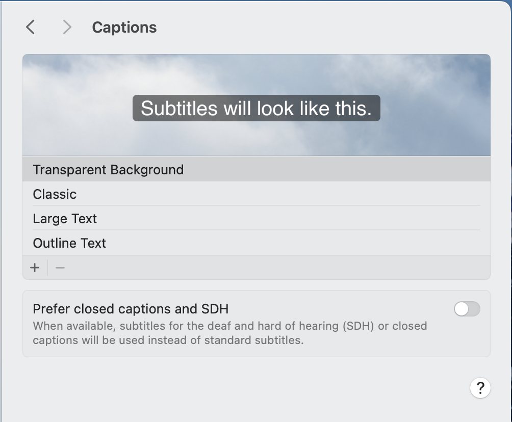 The last option lets you toggle your preference for closed captions and SDH (subtitles for deaf and hard-of-hearing).
