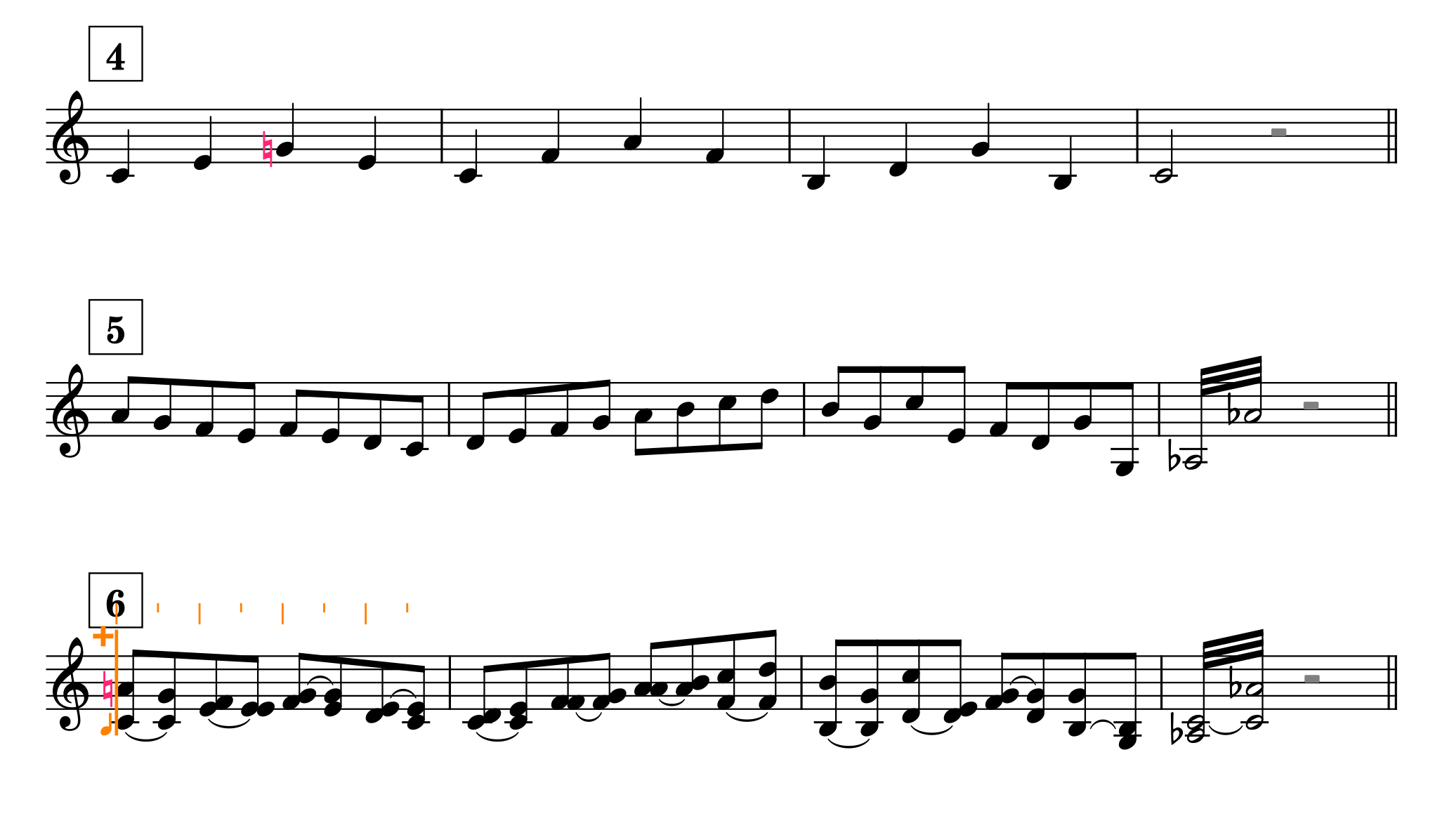 Finally, Chord mode works also outside of note input, for example to extend the duration of a previous note so that it overlaps the following ones: