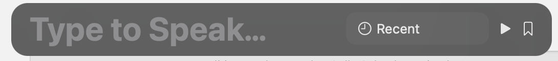 You can resize the width of this field by dragging left or right and reposition it anywhere on the screen by dragging somewhere in the lower-right corner. Clicking on the category button lets you choose between the two default categories (Recent and Saved) while tapping on the bookmark button expands a list of the phrases that belong to that category. A button shaped like a keyboard with a waveform on its bottom right will be added to your menu bar. Tap/click on it to activate/deactivate Live Speech.