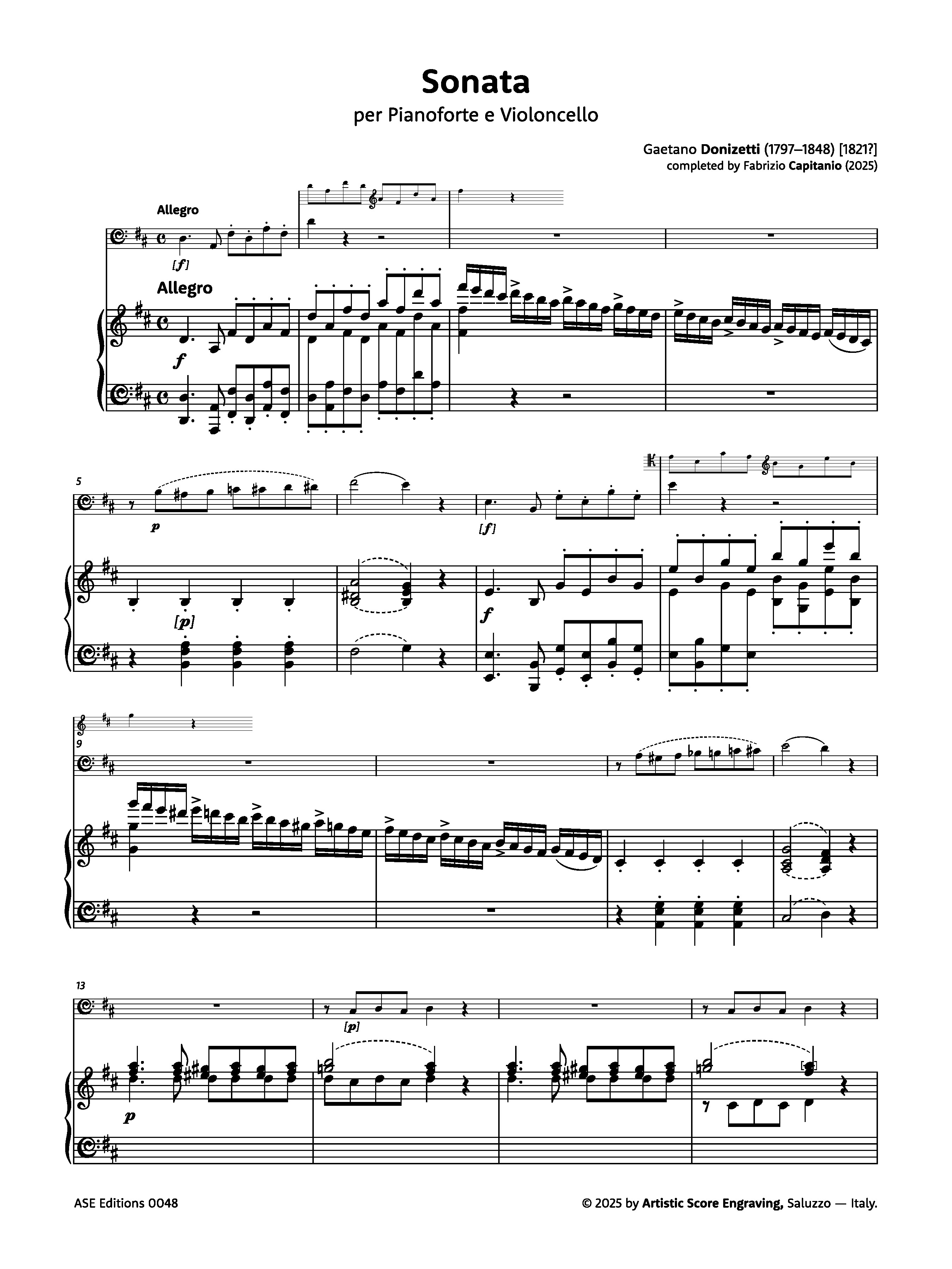 Even through all this mayhem, I have been able to bake two new editions. The first one is something truly special that had remained buried in unknown places ever since its inception. Presenting… Gaetano Donizetti’s Sonata for Piano and Cello! This is a unique gem that was unearthed by Donizetti expert, composer, and library curator Fabrizio Capitanio from Bergamo. The manuscript was in such a bad state that it took two years for us to reconstruct it to a satisfying level. Besides, the cello part of the third movement was fragmentary, so M° Capitanio had to complete it, using his mastery of Donizetti’s style. You can listen to it here, and get your digital copy here (or here, same price, different payment methods). The printed copy is late because, as if it all what I recounted above wasn’t enough, I’m having quality issues with my printer. Here’s a sneak peek for you: