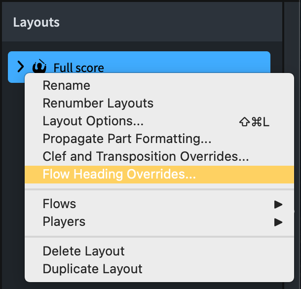 To create a flow heading override, head over to Setup mode, right-click (or Ctrl-click on Mac) on the layout you wish to edit and tap on Flow Heading Overrides… This last section is important because anything you change here will only affect the specific layout you chose, with other layouts remaining completely watertight.