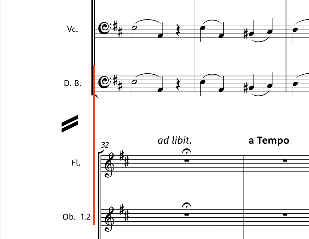 Several aspects concerning staff labels have been improved in this release. One of the significant changes revolves around the possibility of placing staff labels outside the page margins. Something that used to happen (and still happens) in another program is that almost any change to staff labels will trigger some sort of internal reset of the gap between the page margin and the systemic barline, often with disastrous results. Dorico’s approach until version 6 had been to change the distance dynamically between page margin and systemic barline according to the length of the staff label. This was (and still is!) great because it allowed users to worry exclusively about managing sensible shortened staff labels, leaving the rest to Dorico. At the same time, this had the downside of creating different distances if (a) the page contained more than one system and (b) those systems had different staff labels displayed, resulting in different widths of the music system. See this example from one of my recent editions: