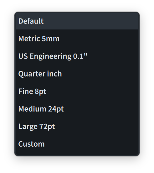 Here you can toggle ON/OFF Show grid, or choose a preset among several choices: