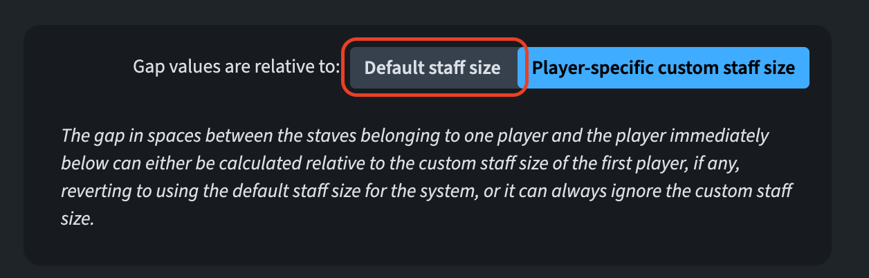 The gap between a pair of staves is calculated relative to the scale factor of the upper stave. In a solo and piano scenario, with a cue-stave scales at, say, 60%, the space is scaled proportionally. Should you not like this, there is a new option in Layout Options ▶︎ Vertical Spacing called Gap values are relative to. Set this to Default staff size to use the 100% size at all times.