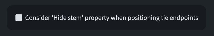 The new option Consider ‘Hide stem’ property when positioning tie endpoints has been added to the Advanced Options section of the Avoiding Collisions section of the Ties page of Engraving Options. This allows better positioning in general for notes that have the ‘Hide stem’ property checked.