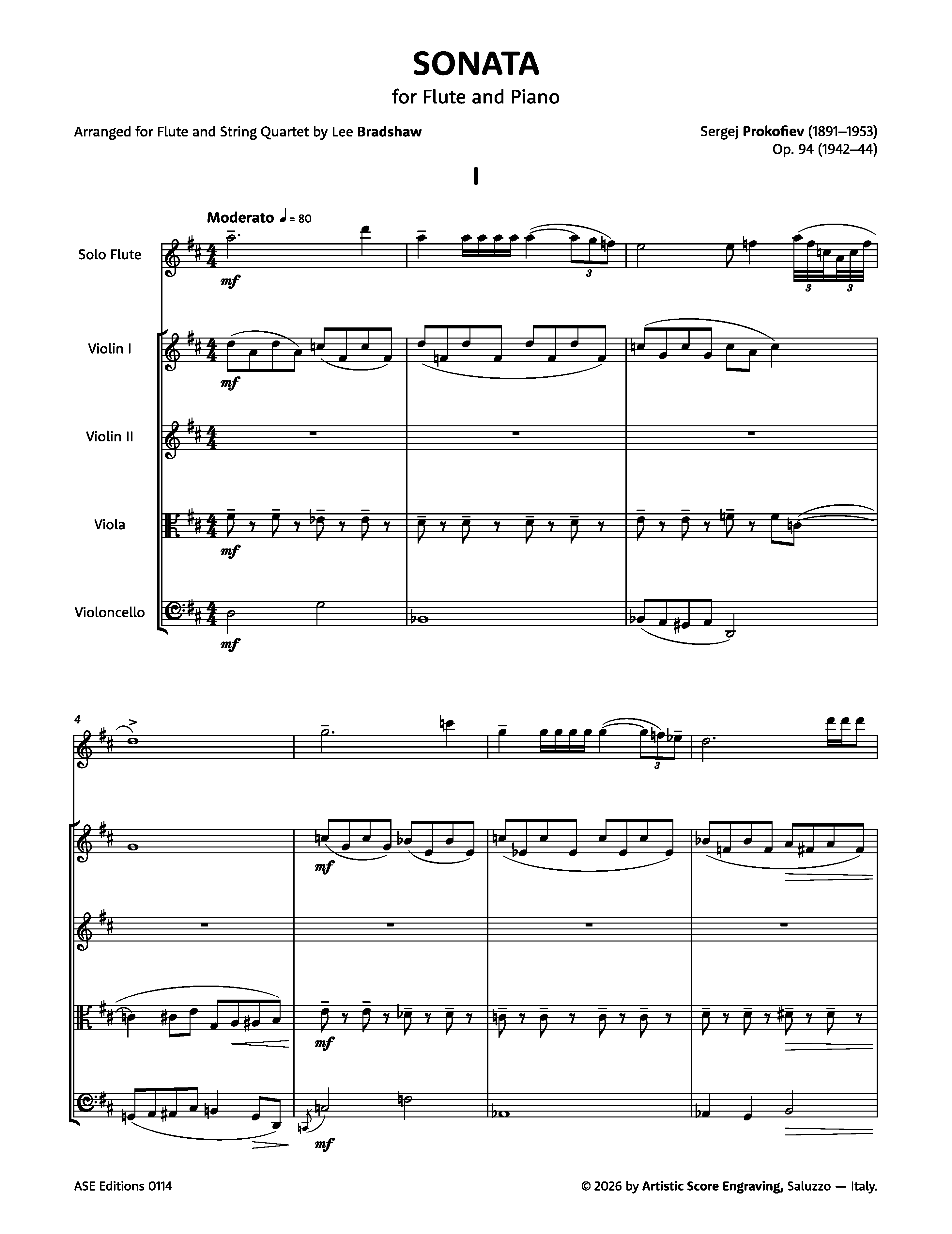 A new edition has joined the ASE family, and it is an arrangement of Sergej Prokofiev’s Sonata for Flute and Piano, Op. 94 (1942–44), for flute and string quartet, by Australian composer Lee Bradshaw. The recording, with Joshua Batty and the Chroma Quartet, will be released later in the summer.