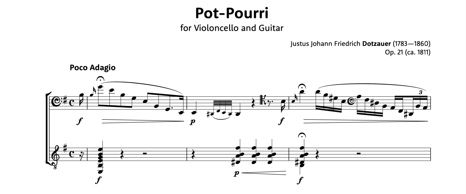 announcing the “Pot-Pourri” for cello and guitar, Op. 21 This article is an expanded version of the Editorial Notes that can be found in the published edition, available at this link. A promotional video of this score can be watched here. EDITORIAL NOTES For the second episode of Phase 2 of the Dotzauer Project, dedicatedContinue reading “Dotzauer Project – Episode 11:”